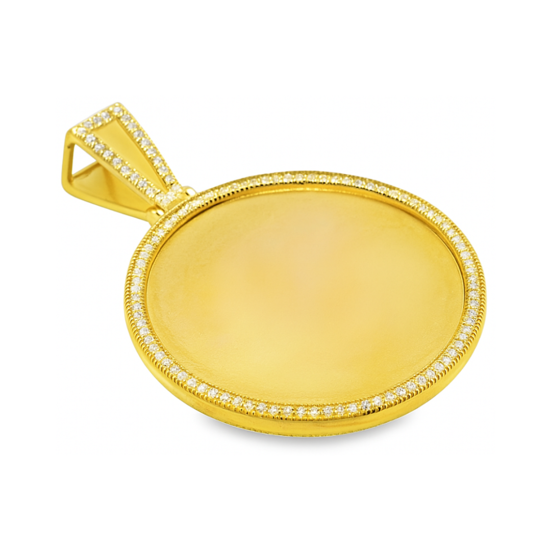 Keep meaningful moments close with this diamond round memory pendant in 10K yellow gold. Sparkling diamonds frame the circular design, creating a clean and timeless look.