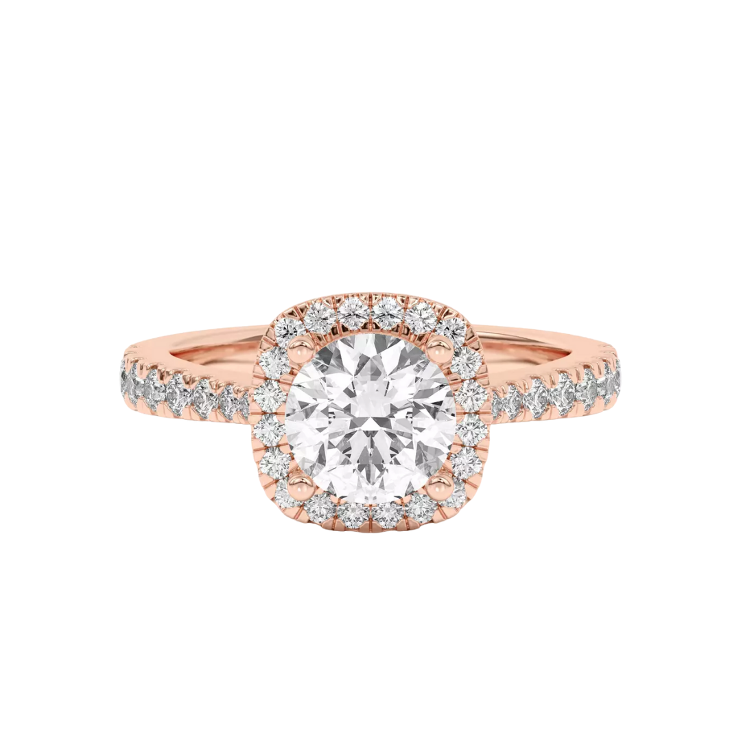 Celebrate your love with this cushion-shaped frame engagement ring in 14K rose gold. Lab-grown diamonds surround the center stone, creating a luminous frame that enhances sparkle from every angle.